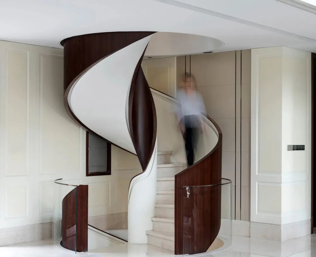 說(shuō)超樓梯界的顏值擔(dān)當(dāng),不得不提的就是"旋轉(zhuǎn)樓梯"。作為空間連通的樞紐,靈動(dòng)朝選、宛若舞動(dòng)著的紐帶 不僅完美的符合其本身的功能性,還成為了空間的一部分甚至是焦點(diǎn),給予空間超乎想象的視覺(jué)美感,